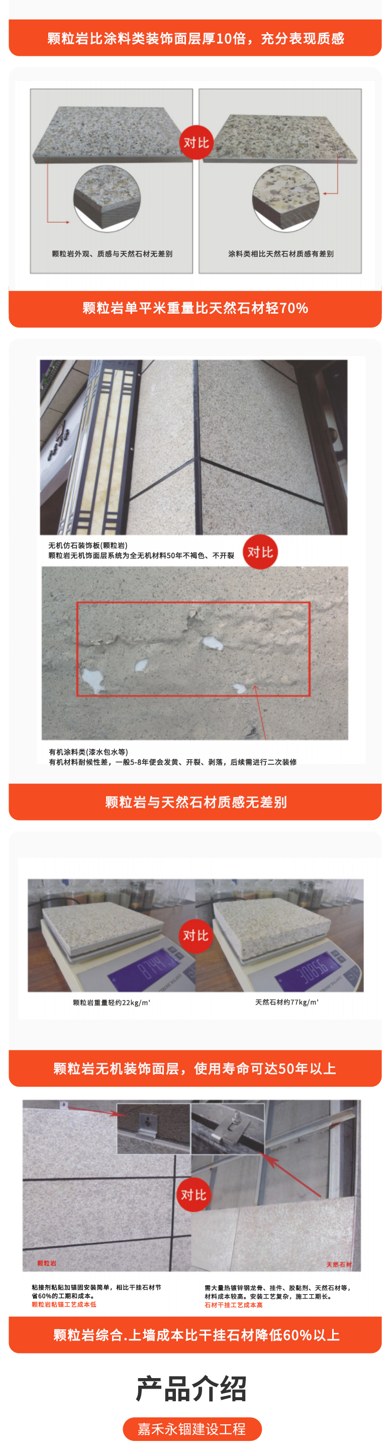 面層厚:巖石板的裝飾面厚度是涂料類飾有機(jī)(以實際報告為主)(以實際報告為主)(以實際報告為主)(以實際報告為主)飾面層的10倍,平均厚度達(dá)到3mm。充分表現(xiàn)出真石質(zhì)感,既美觀又環(huán)保。